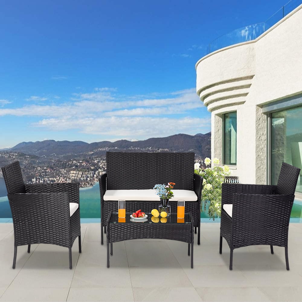 Outdoor Patio Furniture Set 4 Piece Patio Conversation Set With Glass Dining Table Loveseat Cushioned Wicker Chairs Modern Outdoor Rattan Wicker Patio Set For Yard Porch Pool L3135 Walmart Com